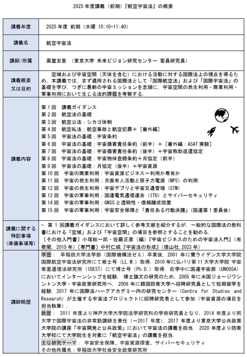 防衛大学校 2024年度前期 航空宇宙法2025 (Spring)